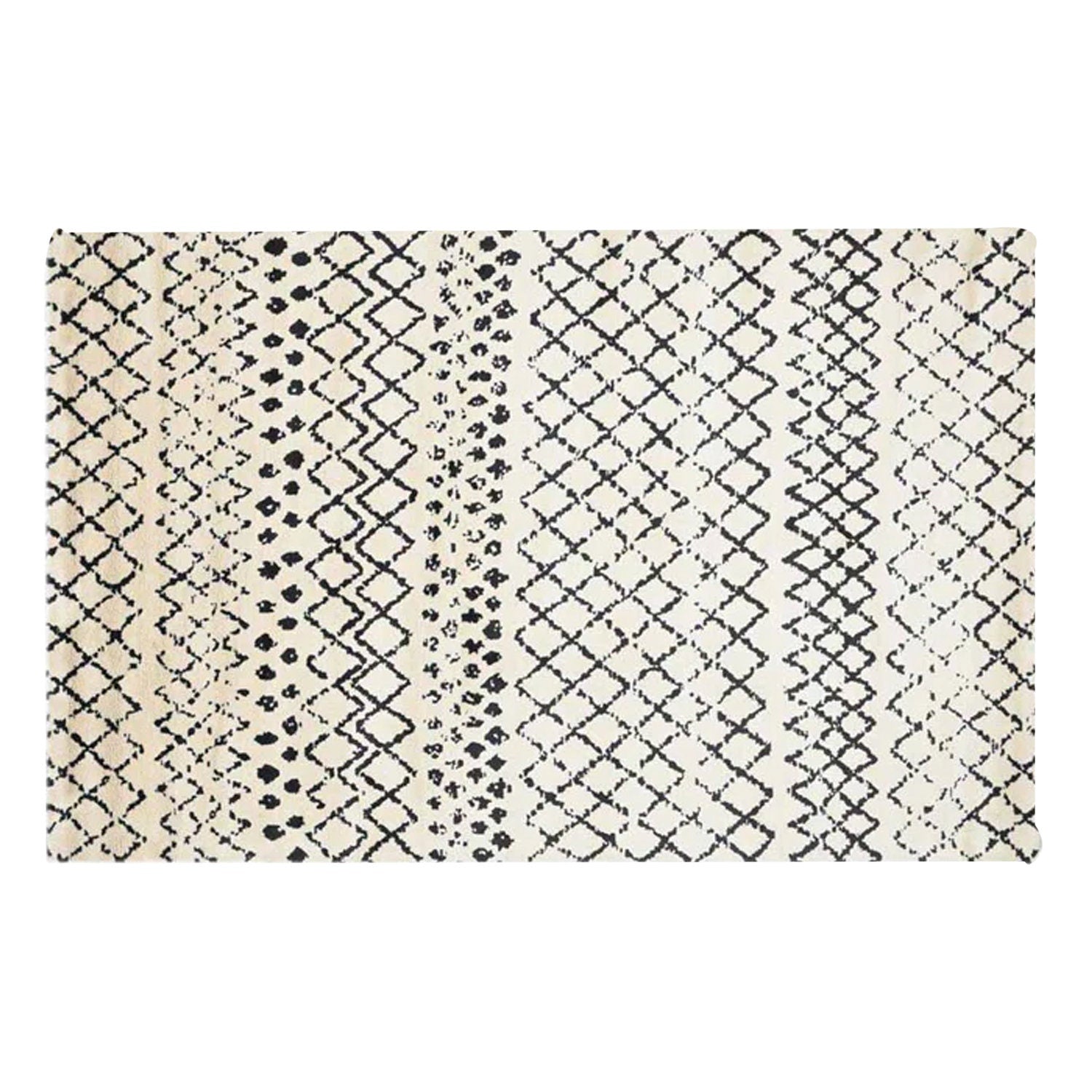 Cream and Black - Handcrafted Rug/Carpet | Pure Wool | Hand Tufted | High Pile | High Density | Yarn Dyed