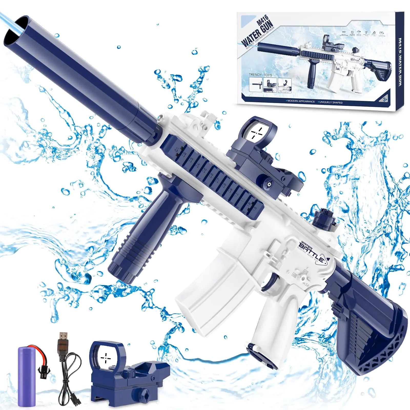 [COOL ELECTRIC WATER GUN: Get ready to experience the ultimate water warfare with our remarkable Electric Water Gun! This water gun takes the thrill to a whole new level with its rapid fire one key shooting feature LET YOUR TARGETS NOWHERE TO ESCAPE: Get ready to drench your opponents from a distance! With impressive shooting power our water gun delivers a continuous long-range spray delivering a powerful stream of water up to 26-32 feet away UNIVERSAL WATER INLET DESIGN: Our electric water gun inlet is designed as a universal bottle port you can expand the amount of water at will when connecting the bottle built in 370cc water tank "DURABLE MATERIALS WITH BATTERY PROTECTION: Our water gun using quality materials to ensure durability and long lasting performance. Plus weve taken extra measures to protect the battery. you can engage in water battles with confidence" "GREAT GIFT OPTION: Looking for the perfect summer gift? Our water gun is the ideal choice! Whether its for pool parties backyard beach family entertainment or any outdoor activity"]