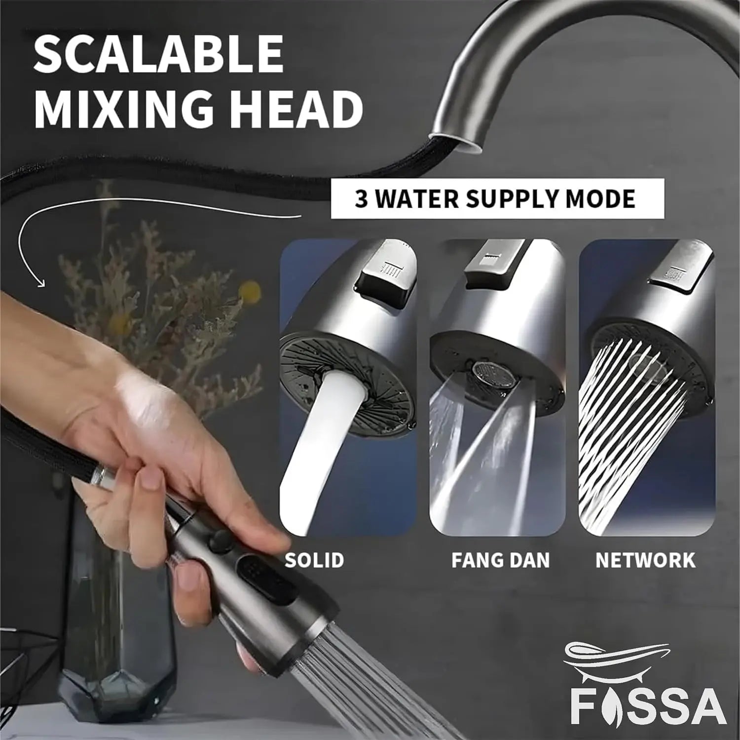Pull-out Faucet- The Multifunctional Kitchen Sink Pull-out tap has a triple-flow function that allows you to switch between bubble, shower and focus flows and control the direction and temperature of the flow.